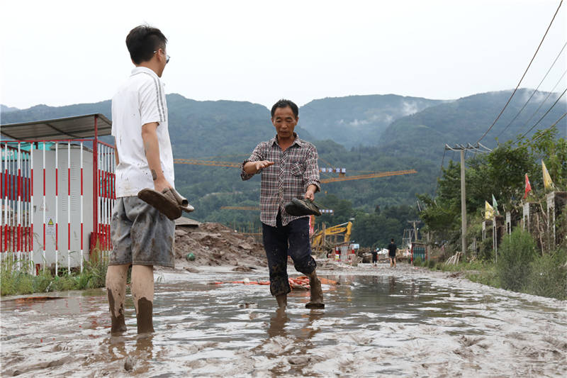 8月18日下午,在草壩青衣江大橋建設(shè)現(xiàn)場,項目部外的院壩、工地附近的道路,均覆蓋著厚厚的淤泥!白蛲砭o急撤離,我的車停在河邊,也沒來得及開走,現(xiàn)在都沒找到!币荒樒v的李勁松告訴記者,雖然洪水漲勢迅猛,但他們撤離之前,提前通知了電力部門斷電,否則若有人再次靠近洪水,將面臨觸電的風(fēng)險。
