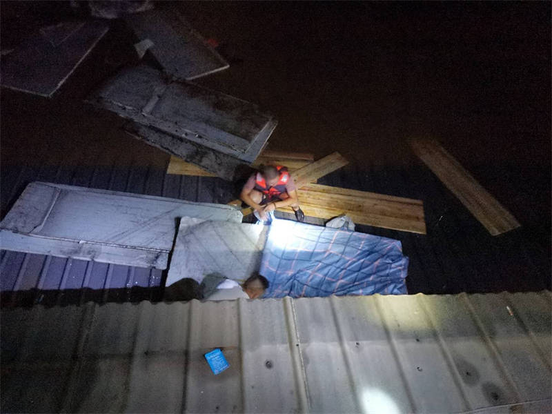 “感謝3名值班人員及時打電話通知我,否則后果不堪設(shè)想。”簡敬奎說,回想起昨晚的情形,心里還是有些后怕。當(dāng)時,他接到值班人員電話后,發(fā)現(xiàn)門衛(wèi)室外的洪水已經(jīng)逼近脖子,無法順利撤離,洪水漲勢又快,不一會兒,他只得爬上門衛(wèi)室頂端才能避免被水淹沒。后來,洪水沖來了一棵樹,簡敬奎借助這棵樹慢慢轉(zhuǎn)移到了附近一棵較高大的樹上繼續(xù)躲避,直至黃志和方華軍前來營救。