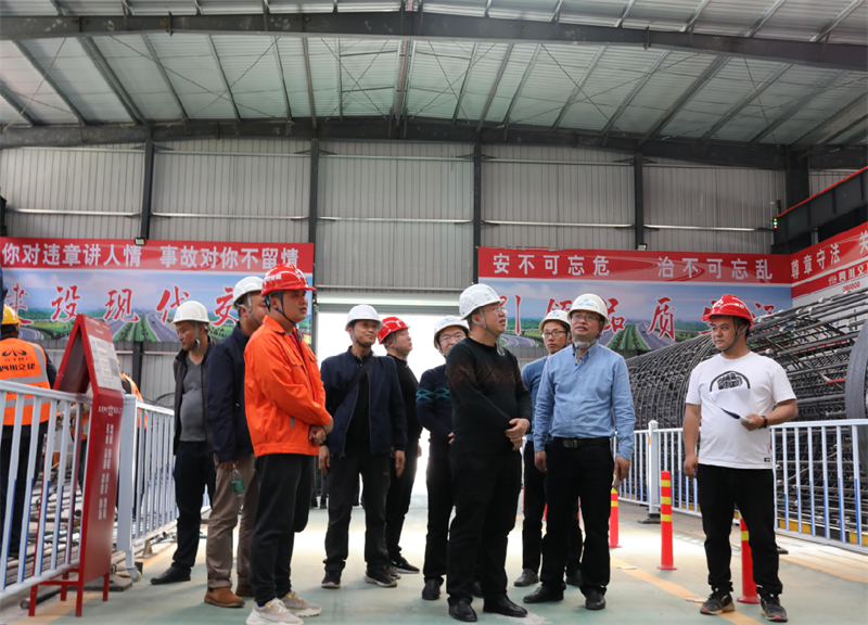 羅倫全一行通過聽取介紹、實地查看、座談交流的方式,重點就項目部駐地規(guī)范化、精細(xì)化建設(shè),鋼筋加工場、拌合站、隧道洞口等主要施工場地的場地規(guī)劃、安全設(shè)施布置,鋼筋加工場和拌合站智能化、標(biāo)準(zhǔn)化作業(yè),隧道工程科學(xué)化施工、黨建文化生活、勞務(wù)管理等進(jìn)行全面學(xué)習(xí)交流。