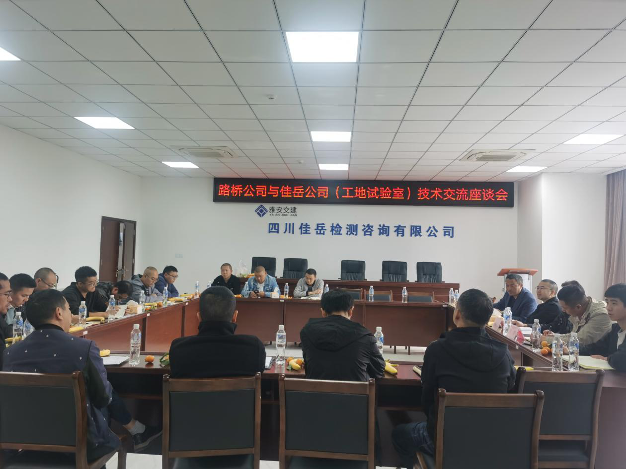 為規(guī)范項(xiàng)目工地試驗(yàn)室管理工作,進(jìn)一步提高試驗(yàn)檢測(cè)技術(shù)人員業(yè)務(wù)水平,提升試驗(yàn)檢測(cè)工作質(zhì)量,全力保障項(xiàng)目施工進(jìn)度及工程質(zhì)量,11月7日,雅安交建集團(tuán)組織所屬四川康藏路橋有限責(zé)任公司項(xiàng)目施工技術(shù)負(fù)責(zé)人和四川佳岳檢測(cè)咨詢有限公司工地試驗(yàn)室技術(shù)負(fù)責(zé)人進(jìn)行技術(shù)交流。集團(tuán)公司總工程師程學(xué)強(qiáng)參加座談。