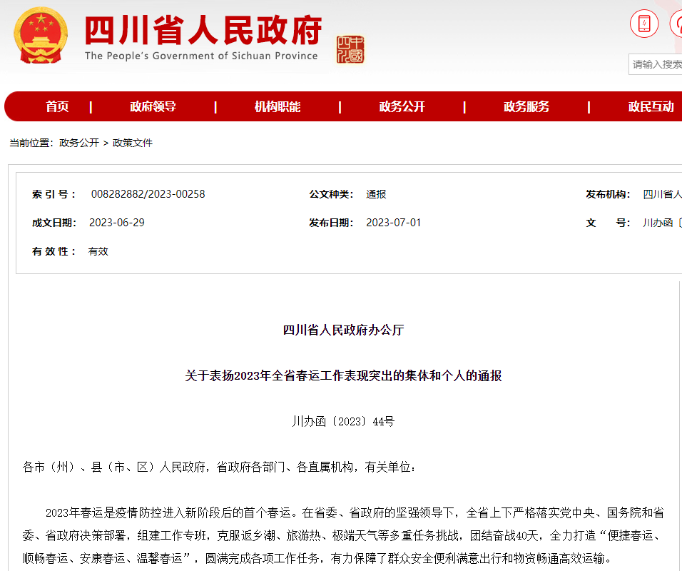 近日,四川省人民政府辦公廳印發(fā)《關于表揚2023年全省春運工作表現突出的集體和個人的通報》,四川蜀通運業(yè)有限公司榮獲 “2023年全省春運工作表現突出集體”稱號。 2023年春運期間,蜀通公司投入班線車輛15579車次,發(fā)班20501班次,安全運送旅客25萬余人次,未發(fā)生重特大安全事故,無人員傷亡,未發(fā)生重大道路運輸投訴事件,圓滿完成2023年春運工作,向全市人民交上一份滿意的春運答卷。