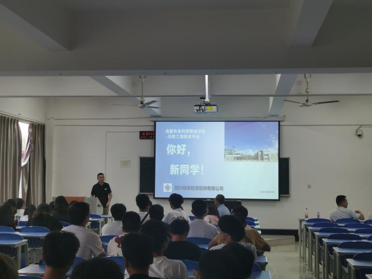 為深化校企合作,促進(jìn)合作內(nèi)容全面落實(shí)落地、交流融合,近日,交建集團(tuán)四川佳岳檢測公司應(yīng)邀參加成都農(nóng)業(yè)科技職業(yè)學(xué)院城鄉(xiāng)建設(shè)學(xué)院市政班入學(xué)專業(yè)教育分享會。佳岳公司檢測技術(shù)部工程師侯濤在會上作分享交流。