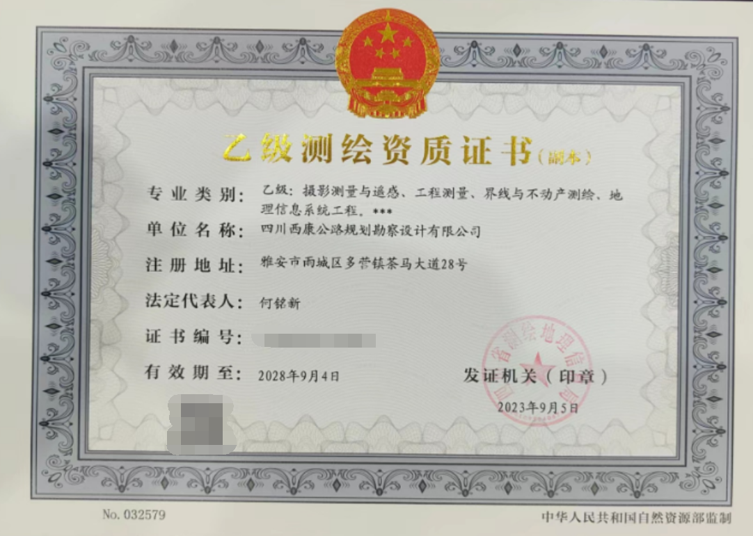 雅安交建集團西康勘察設(shè)計有限公司取得測繪乙級資質(zhì)