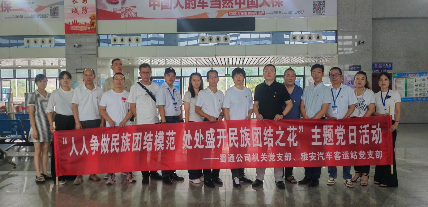 為鑄牢中華民族共同體意識(shí),全面把握習(xí)近平總書(shū)記關(guān)于加強(qiáng)和改進(jìn)民族工作的重要思想,深入貫徹落實(shí)習(xí)近平總書(shū)記在二十屆中央政治局第九次集體學(xué)習(xí)時(shí)的重要講話精神,大力弘揚(yáng)民族團(tuán)結(jié)一家親的優(yōu)良傳統(tǒng)。9月19日,蜀通公司機(jī)關(guān)黨支部、雅安汽車(chē)客運(yùn)站黨支部聯(lián)合開(kāi)展了“人人爭(zhēng)做民族團(tuán)結(jié)模范,處處盛開(kāi)民族團(tuán)結(jié)之花”主題黨日活動(dòng)。