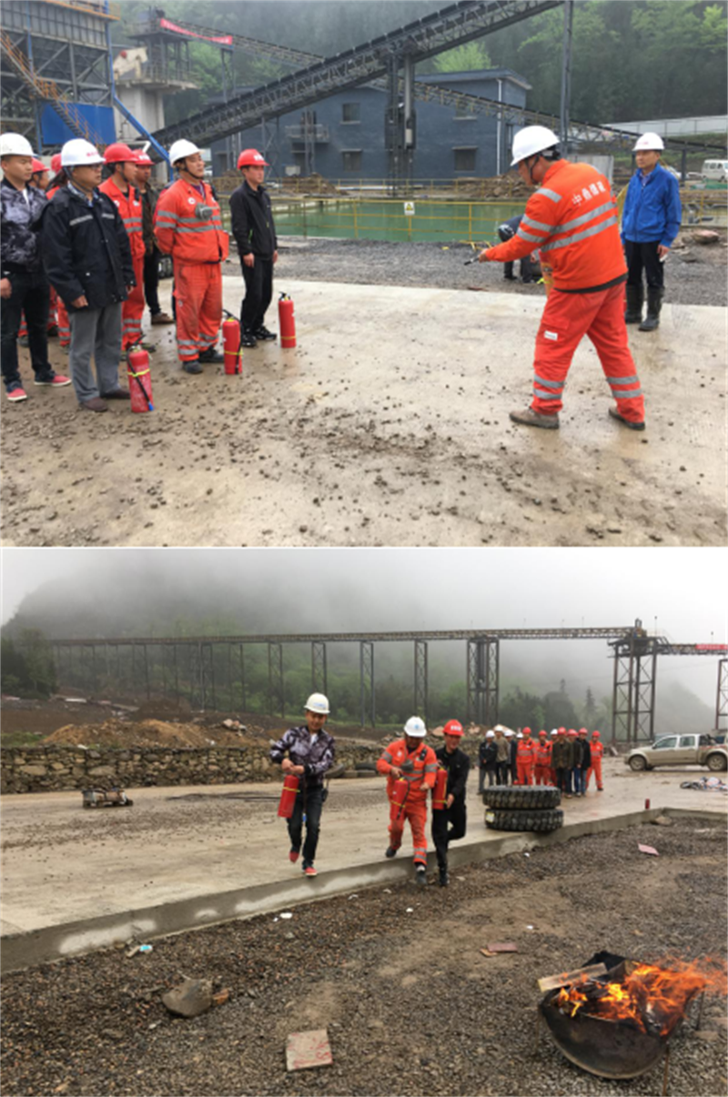 隨后,中鼎爆破公司總經(jīng)理陳永向大家講解了消防安全知識和火災(zāi)發(fā)生后的處理辦法及逃生、救護方式,并演示了滅火器材的使用和現(xiàn)場撲救技能。隨后丹石公司與中鼎爆破公司和路橋公司進行了消防應(yīng)急演練。