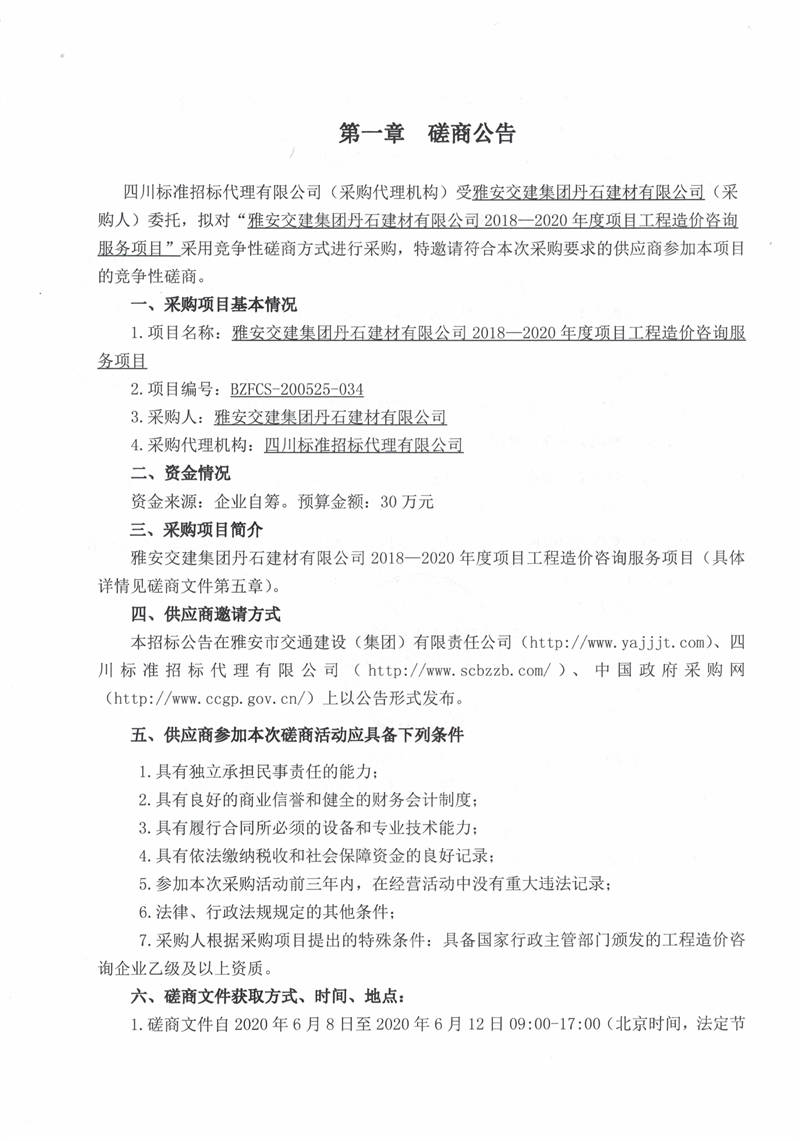 雅安交建集團(tuán)丹石建材有限公司2018—2020年度項目工程造價咨詢服務(wù)項目競爭性磋商公告