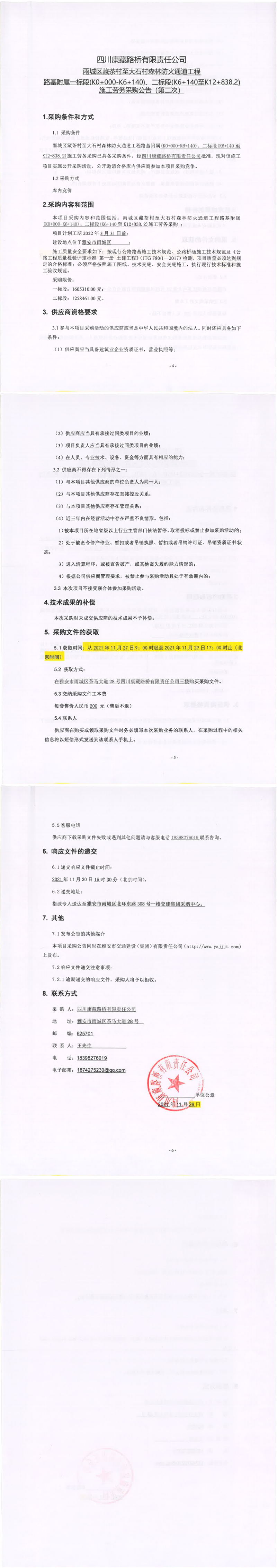 四川康藏路橋有限責(zé)任公司雨城區(qū)藏茶村至大石村森林防火通道工程路基附屬一標段(K0+000-K6+140)、二標段(K6+140至K12+838.2)施工勞務(wù)采購公告(第二次)