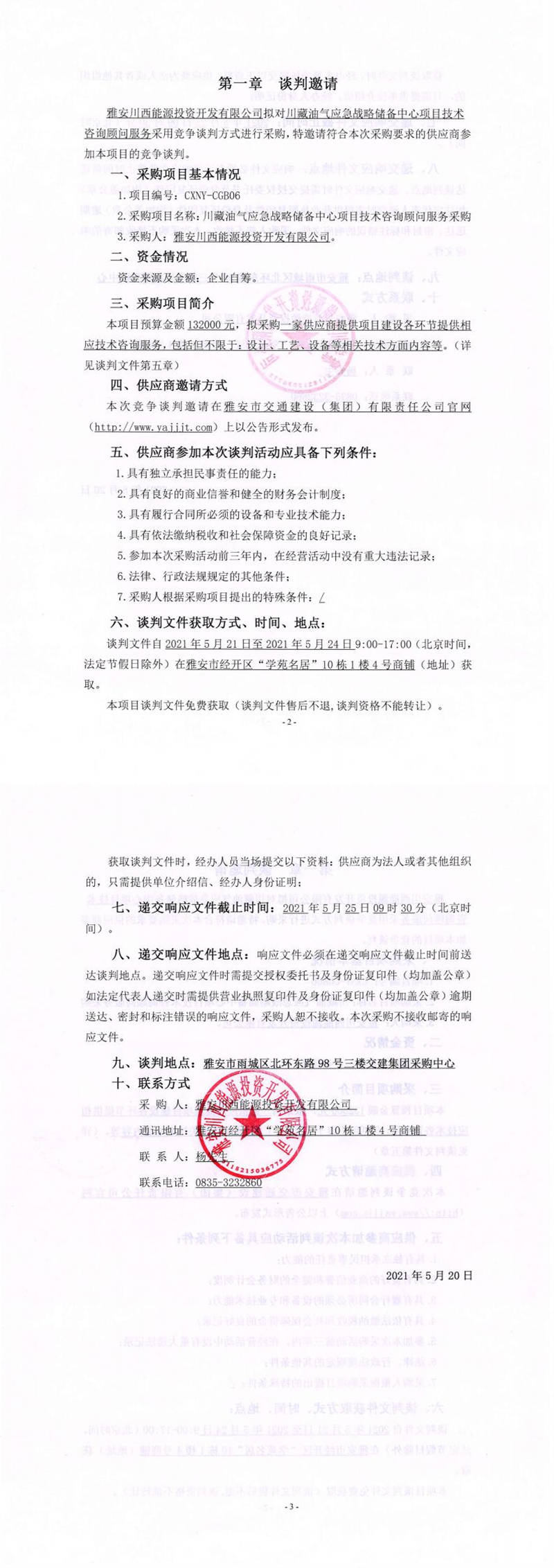 雅安川西能源投資開(kāi)發(fā)有限公司川藏油氣應(yīng)急戰(zhàn)略?xún)?chǔ)備中心項(xiàng)目技術(shù)咨詢(xún)顧問(wèn)服務(wù)采購(gòu)競(jìng)爭(zhēng)談判公告