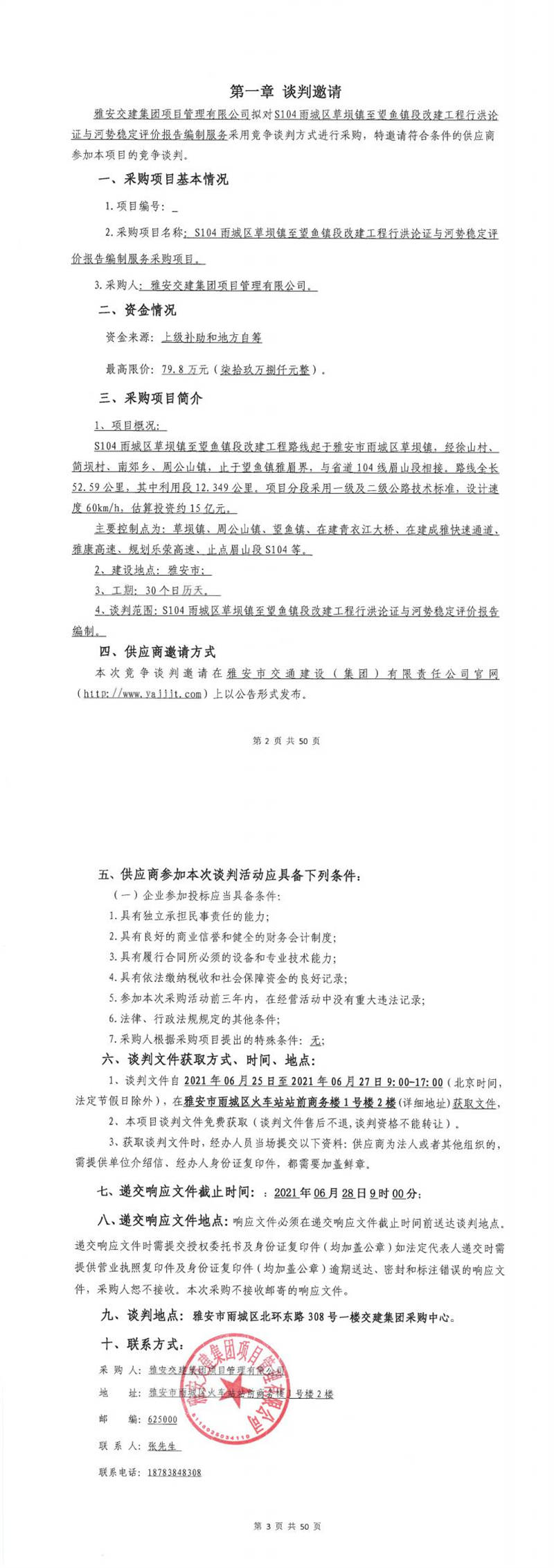 雅安交建集團項目管理有限公司S104雨城區(qū)草壩鎮(zhèn)至望魚鎮(zhèn)段改建工程行洪論證與河勢穩(wěn)定評價報告編制服務采購項目競爭談判公告