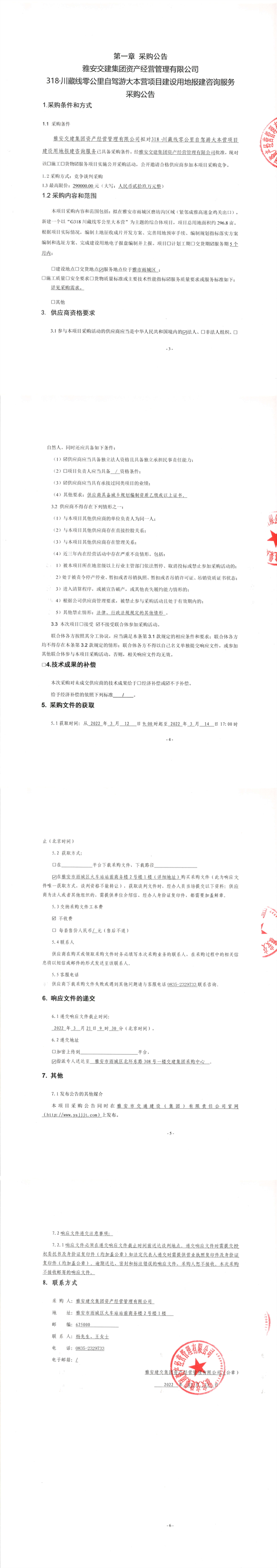 雅安交建集團(tuán)資產(chǎn)經(jīng)營管理有限公司318.川藏線零公里自駕游大本營項(xiàng)目建設(shè)用地報(bào)建咨詢服務(wù)采購公告