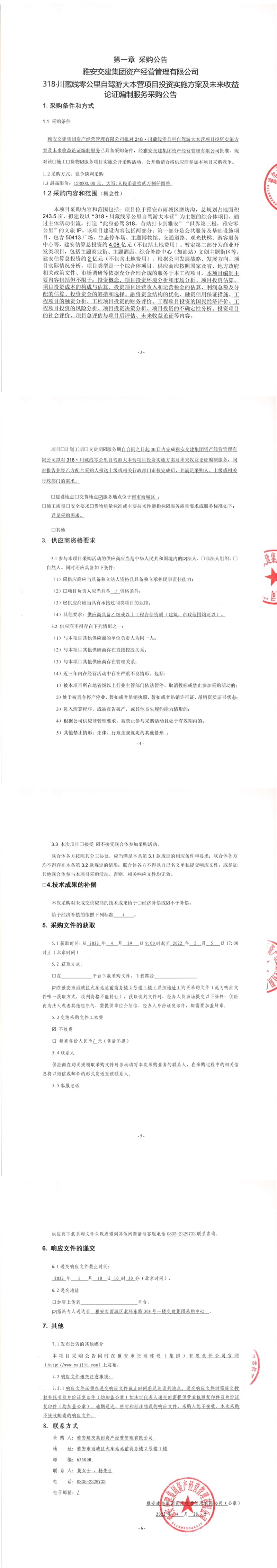 雅安交建集團(tuán)資產(chǎn)經(jīng)營(yíng)管理有限公司318·川藏線零公里自駕游大本營(yíng)項(xiàng)目投資實(shí)施方案及未來收益論證編制服務(wù)采購(gòu)公告