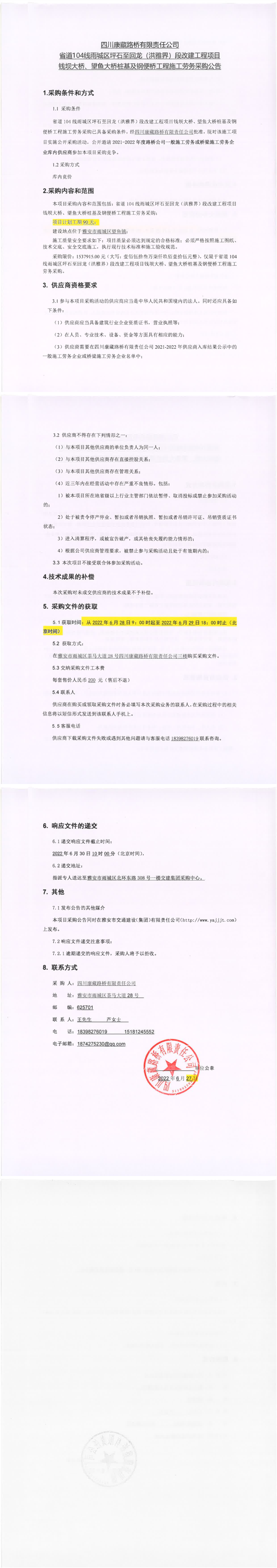 四川康藏路橋有限責(zé)任公司省道104線雨城區(qū)坪石至回龍(洪雅界)段改建工程項(xiàng)目錢壩大橋、望魚大橋樁基及鋼便橋工程施工勞務(wù)采購(gòu)公告