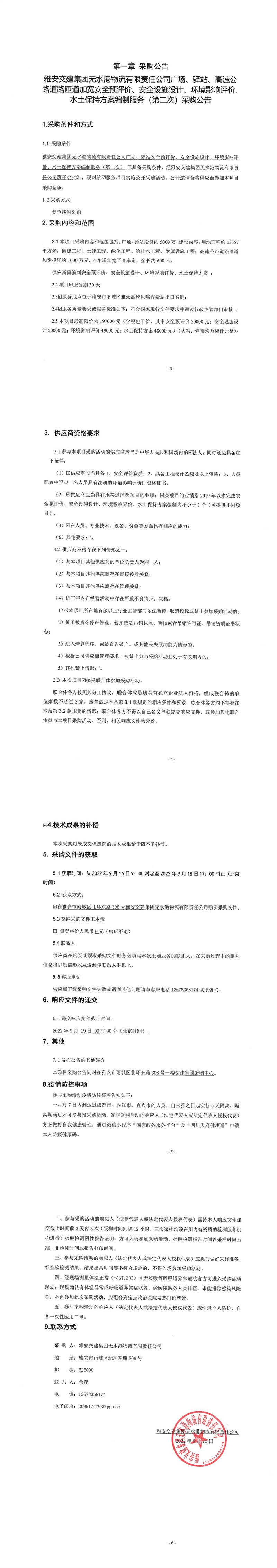 雅安交建集團(tuán)無水港物流有限責(zé)任公司廣場、驛站、高速公路道路匝道加寬安全預(yù)評價、安全設(shè)施設(shè)計(jì)、環(huán)境影響評價、水土保持方案編制服務(wù)(第二次)采購公告