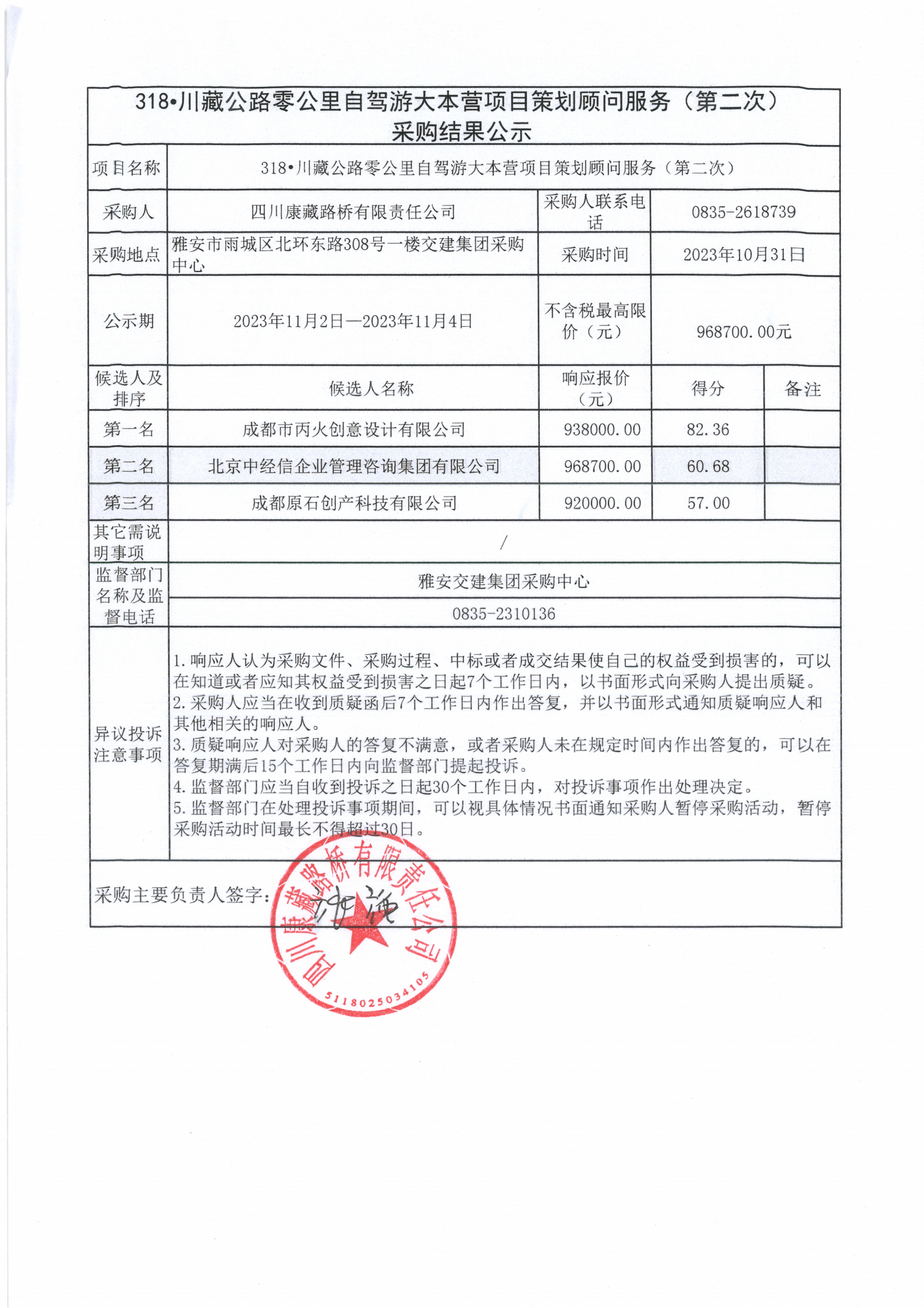 四川康藏路橋有限責(zé)任公司 318•川藏公路零公里自駕游大本營(yíng)項(xiàng)目策劃顧問(wèn)服務(wù)(第二次)采購(gòu)結(jié)果公示