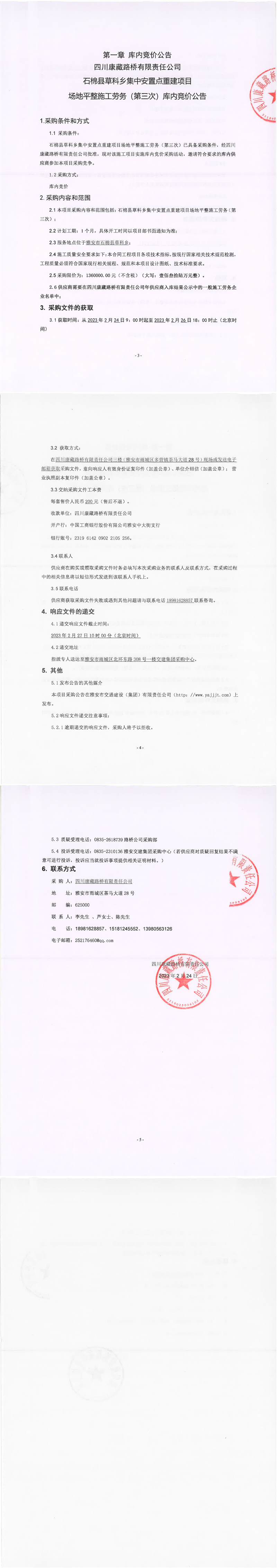 四川康藏路橋有限責(zé)任公司石棉縣草科鄉(xiāng)集中安置點(diǎn)重建項(xiàng)目場(chǎng)地平整施工勞務(wù)(第三次)庫內(nèi)競(jìng)價(jià)