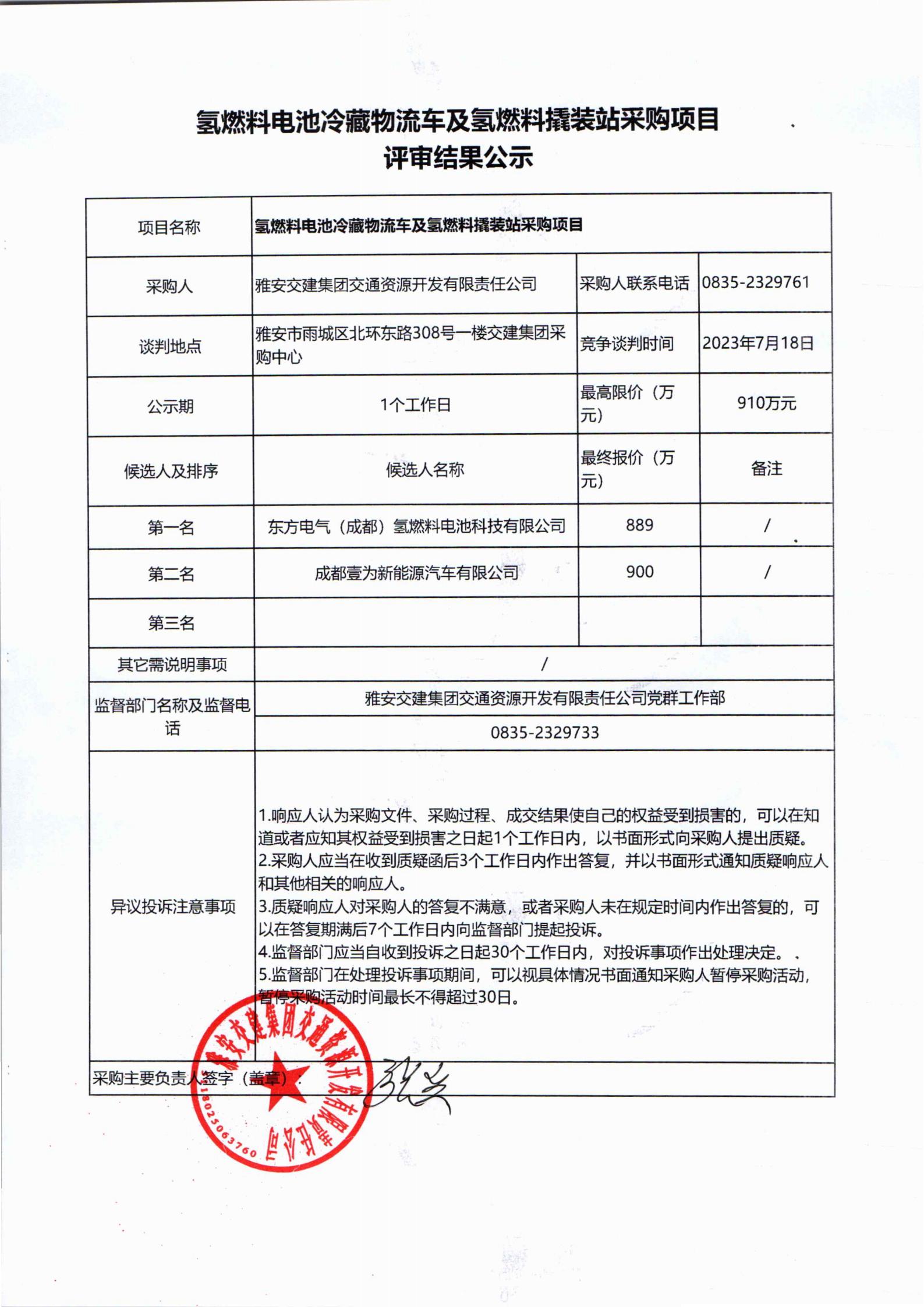 雅安交建集團(tuán)交通資源開發(fā)有限責(zé)任公司氫燃料撬裝站采購項(xiàng)目評(píng)審結(jié)果公示