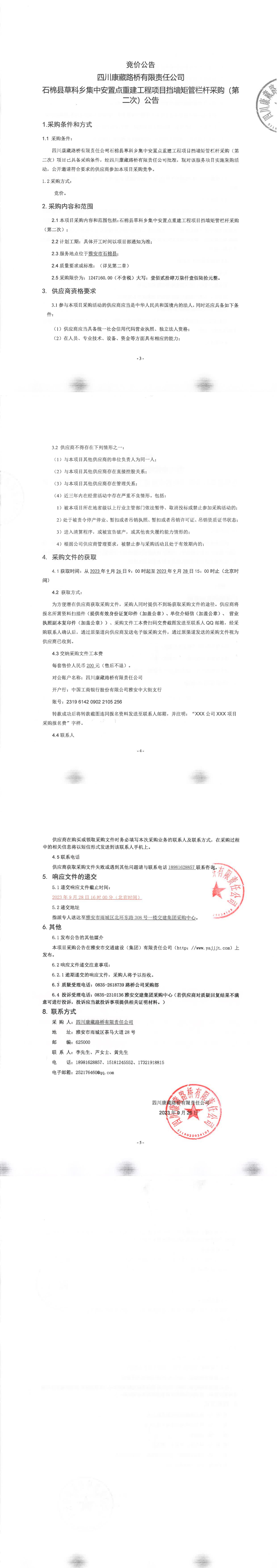 四川康藏路橋有限責任公司石棉縣草科鄉(xiāng)集中安置點重建工程項目擋墻矩管欄桿采購(第二次)公告