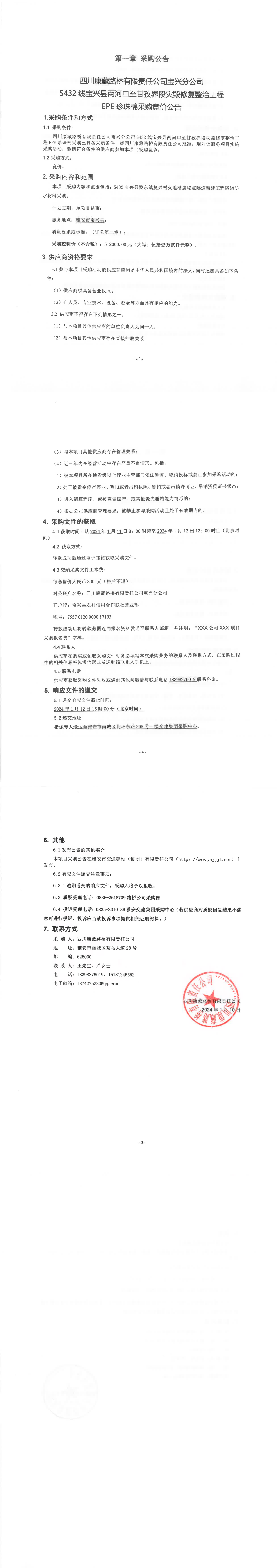 四川康藏路橋有限責(zé)任公司寶興分公司S432線寶興縣兩河口至甘孜界段災(zāi)毀修復(fù)整治工程EPE珍珠棉采購競(jìng)價(jià)公告