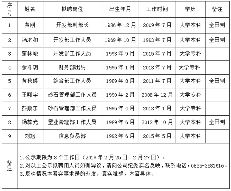 通過(guò)公開(kāi)報(bào)名、資格審查、筆試、面試等程序,經(jīng)雅安交建集團(tuán)運(yùn)通貿(mào)易有限公司研究,對(duì)以下