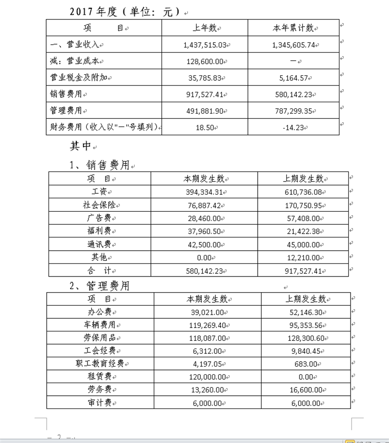 2017年度(單位:元)