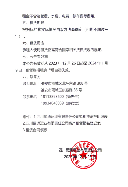 四川蜀通運(yùn)業(yè)有限責(zé)任公司關(guān)于部分商鋪、辦公室對外招租的公告