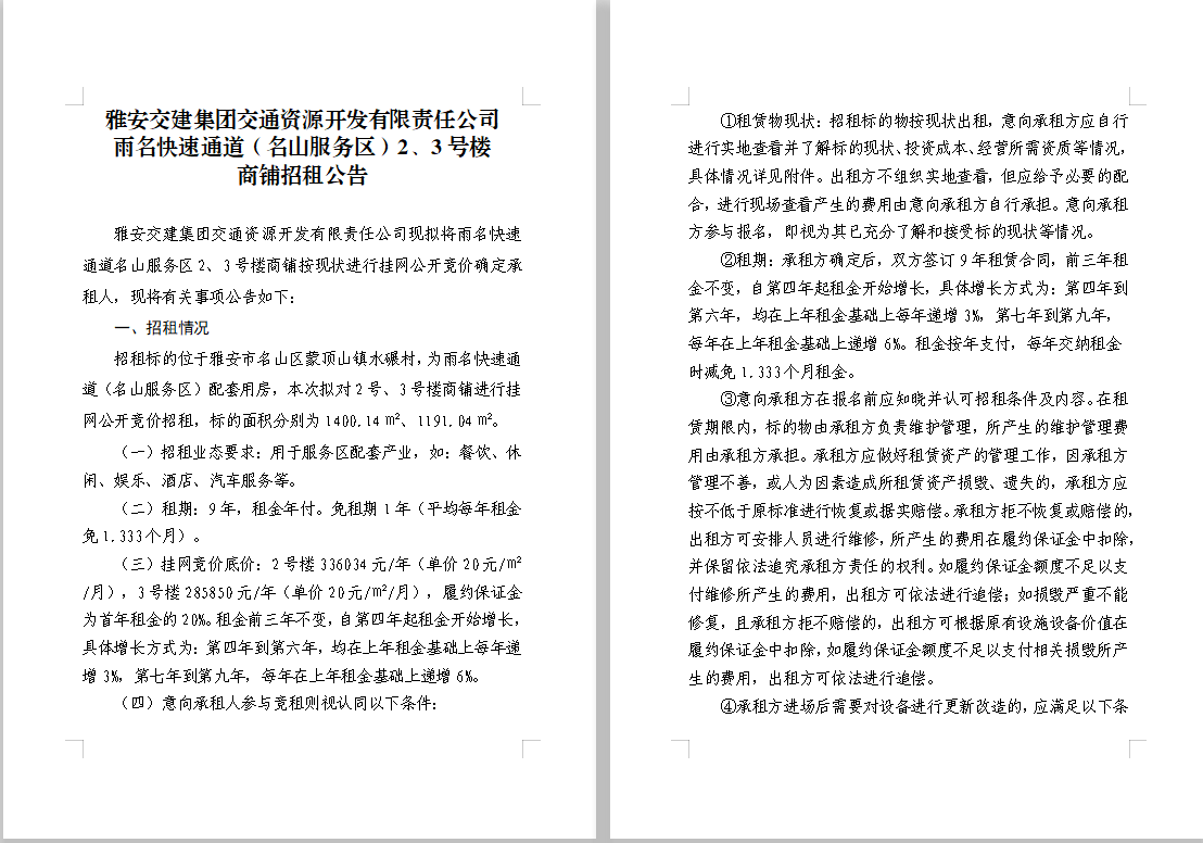 交通資源開發(fā)公司雨名快速通道(名山服務區(qū))2、3號樓商鋪招租公告附件