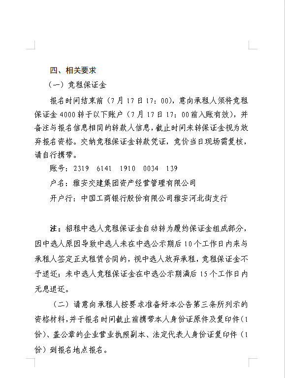 雅安交建集團資產(chǎn)經(jīng)營管理有限公司雨城區(qū)大興鎮(zhèn)水津關(guān)堆料場龍溪村四組和八組部分閑置臨時用地招租公告