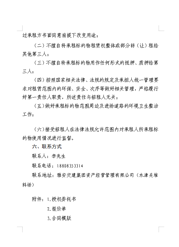 雅安交建集團資產(chǎn)經(jīng)營管理有限公司 雅安市雨城區(qū)大興鎮(zhèn)水津關(guān)堆料場龍溪村四組和八組部分閑置臨時用地招租公告附件