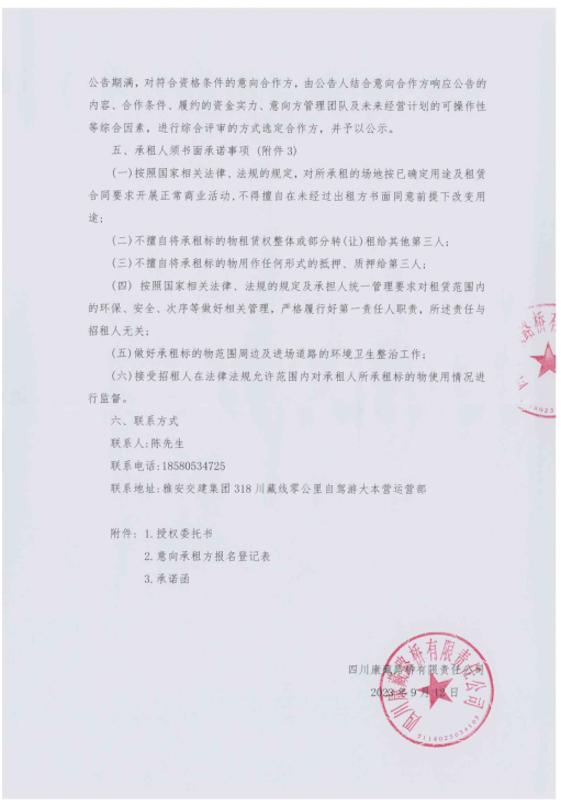 四川康藏路橋有限責(zé)任公司318·川藏線(xiàn)零公里自駕游大本營(yíng)臨時(shí)用地臨時(shí)招租征集公告