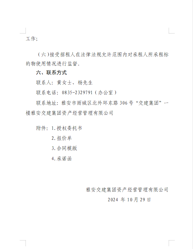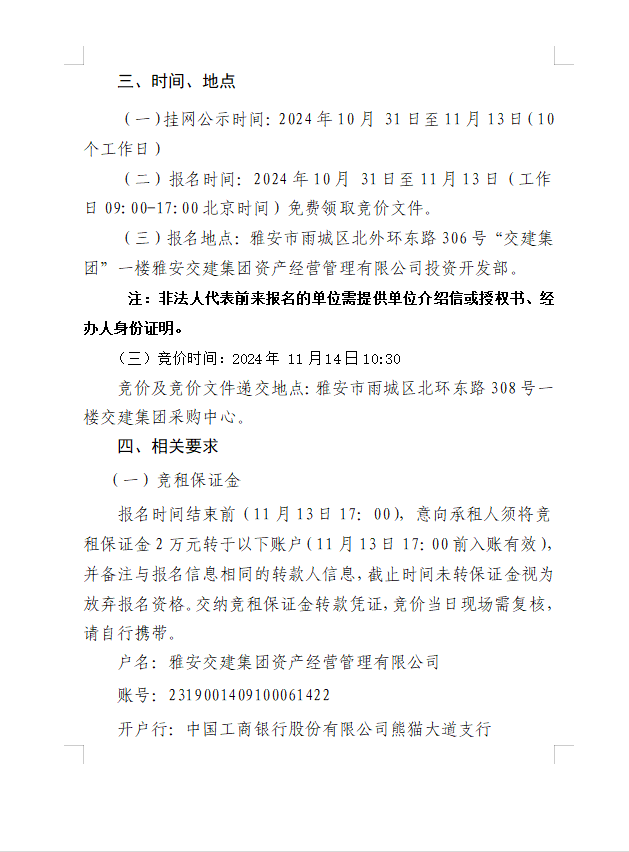 雅安交建集團資產(chǎn)經(jīng)營管理有限公司雨名快速通道(名山服務(wù)區(qū))1號樓配套用房招租公告