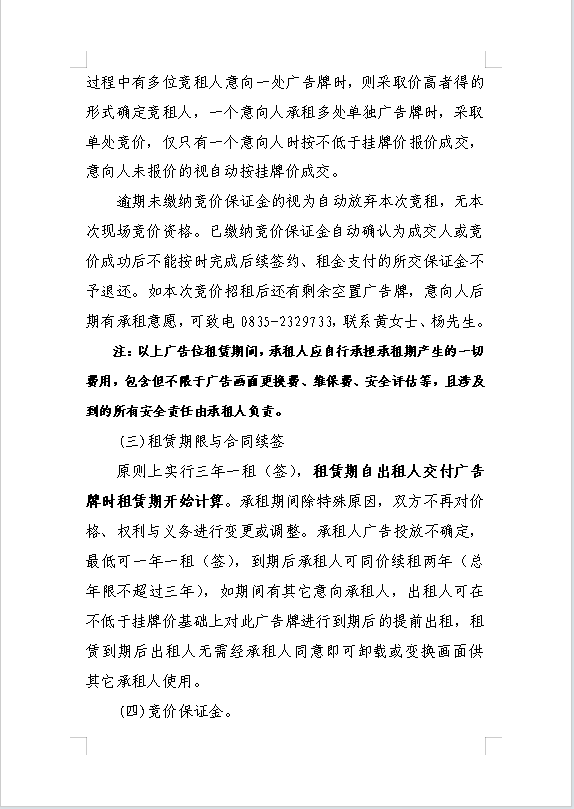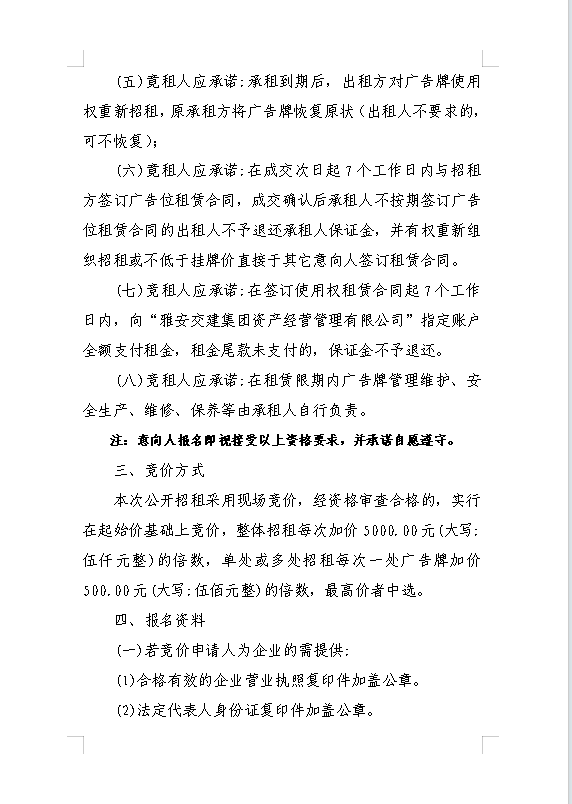 雅安交建集團資產經(jīng)營管理有限公司關于戶外廣告位競價招租的公告附件