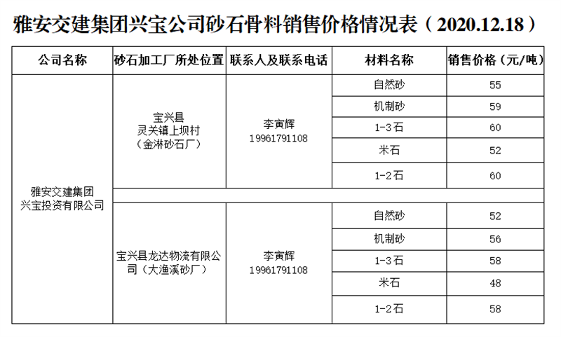 ÑŰ²½»½¨¼¯ˆF(tu¨¢n)ÔÆÊ¯¹«Ë¾É°Ê¯¹ÇÁÏäNÊÛƒr¸ñÇé›r±í£¨2020.12.15£©