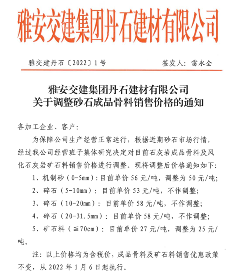 ÑŰ²½»½¨¼¯ˆF(tu¨¢n)µ¤Ê¯¹«Ë¾êP(gu¨¡n)ÓÚÕ{(di¨¤o)Õûɰʯ³ÉÆ·¹ÇÁÏäNÊÛƒr(ji¨¤)¸ñµÄ֪ͨ£¨2022.1.5£©