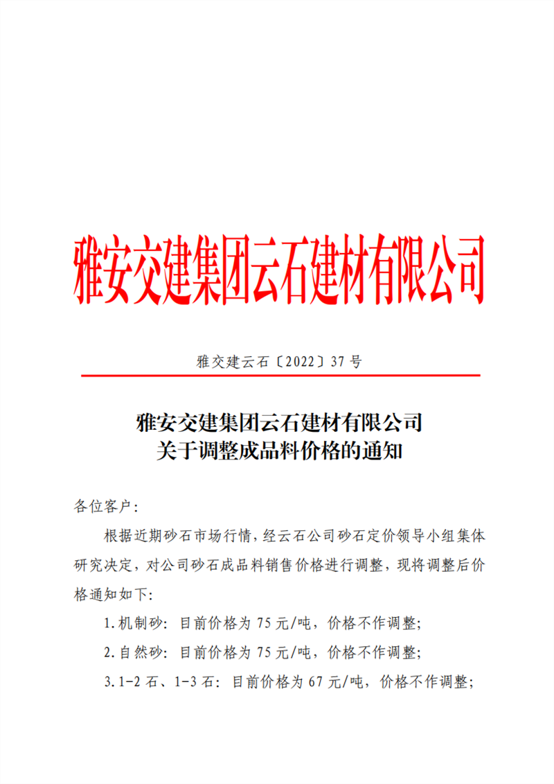ÑŰ²½»½¨¼¯ˆF(tu¨¢n)ÔÆÊ¯½¨²ÄÓÐÏÞ¹«Ë¾ êP(gu¨¡n)ÓÚÕ{(di¨¤o)Õû³ÉÆ·Áσr(ji¨¤)¸ñµÄ֪ͨ--2022-5-25