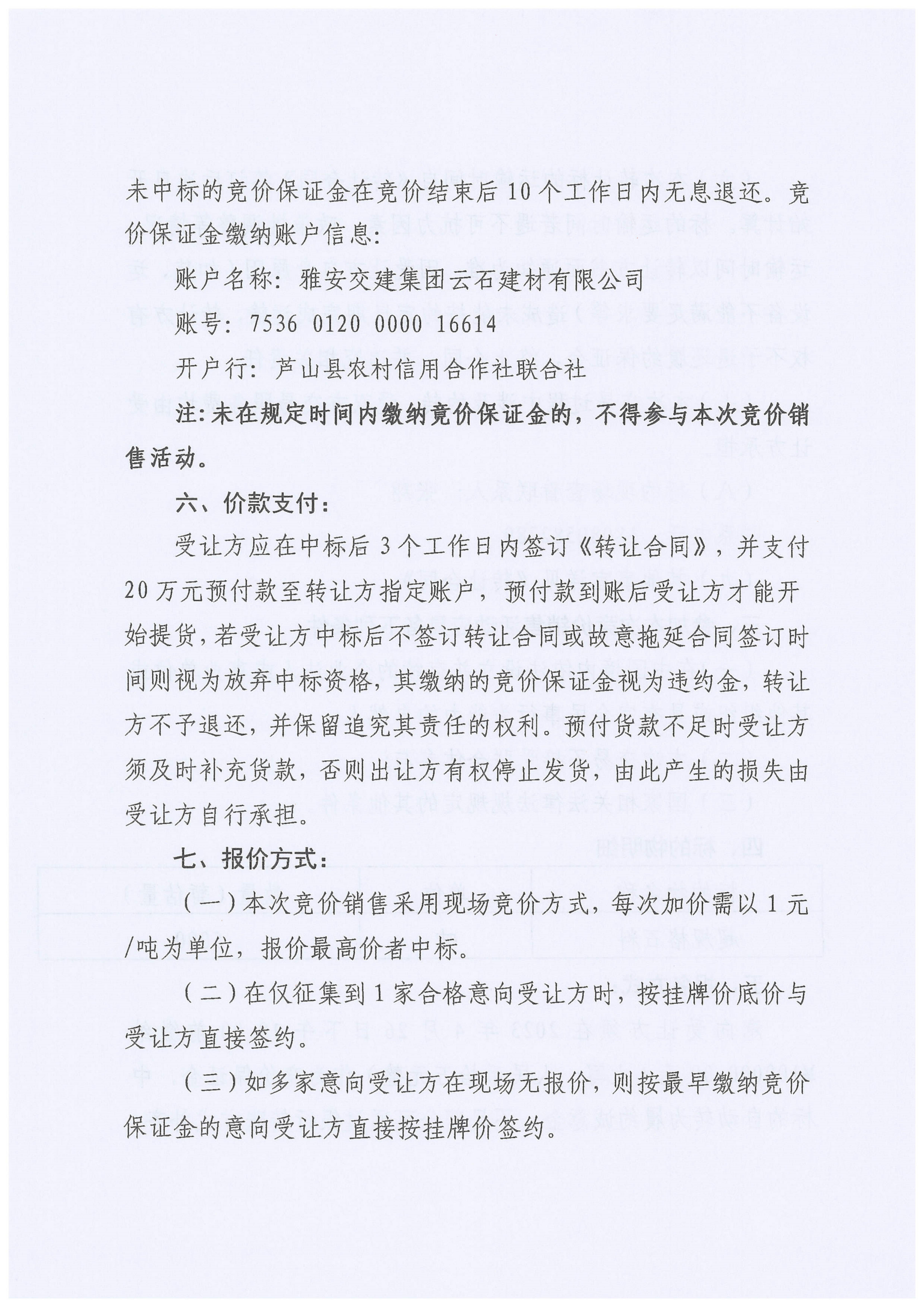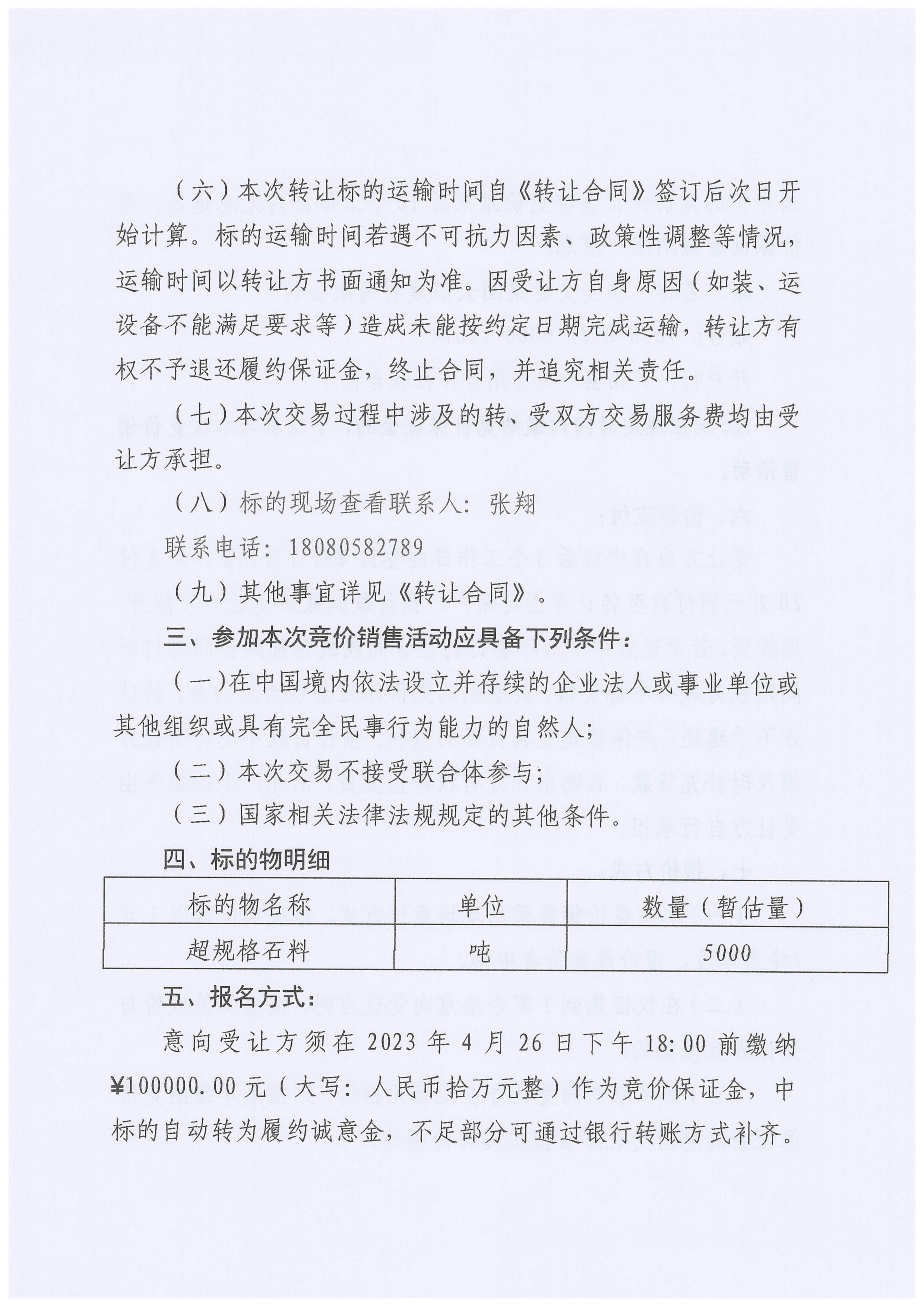 雅交建云石建材有限公司超規(guī)格石料競價(jià)銷售公告(2023-4-24)